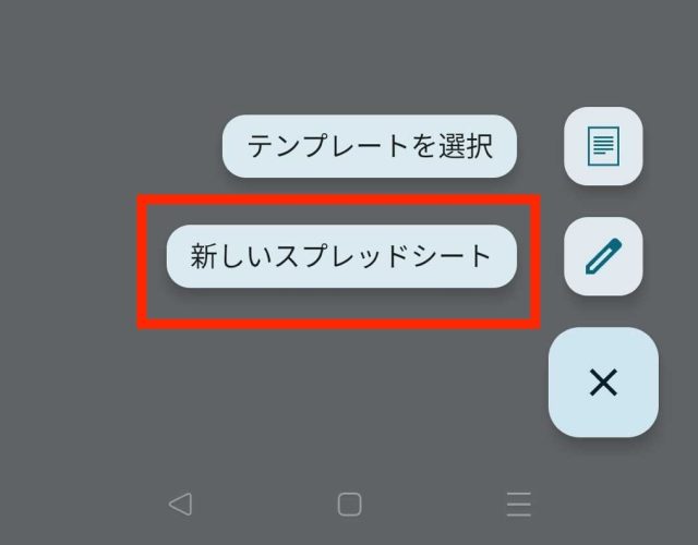 3.「新しいスプレッドシート」を選択し、白紙の表が作成されます。