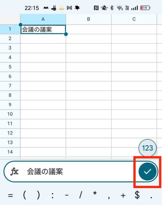 1.入力したいセルをタップします。