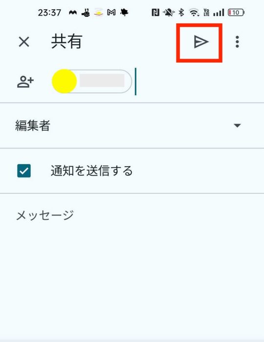5.「紙飛行機」アイコンを押すと、相手に共有リンクが送られます。
