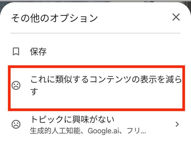 Google Discoverを完全にオフにしなくても、気になる記事だけを個別に非表示にできます。