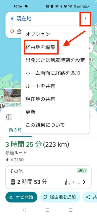 3.表示されるメニューの中に「経由地を編集」がありますので、選んでください。