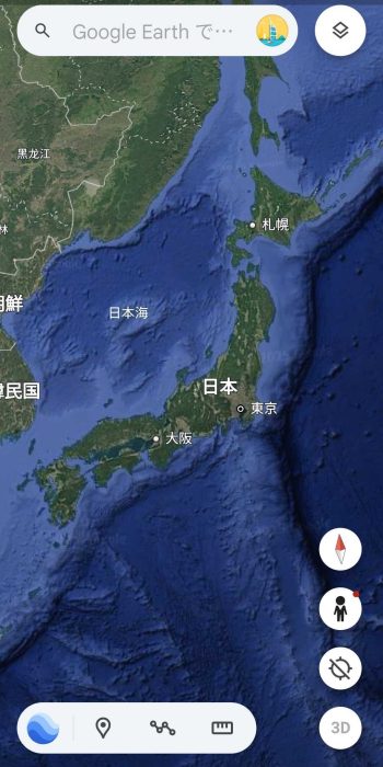 Google Earthは無料の地図アプリです。スマホにまだ入っていない場合はインストールします。