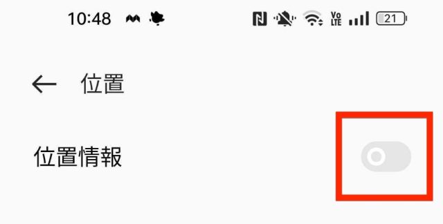 3.「位置情報」のスイッチをタップして、有効にします。