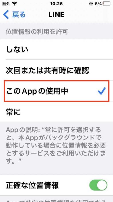 4.「このAppの使用中」を選択します。