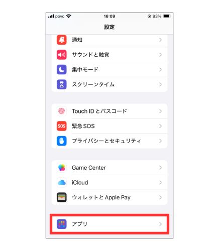 「設定」を開いて出てくる項目から「アプリ」を選択。