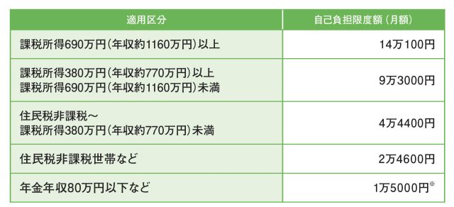1か月分の自己負担額が、収入に応じた限度額(下の表参照)を超えた場合、申請をすれば超えた分の金額を払い戻してもらえます。
