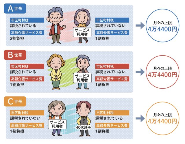 介護サービスの利用者が同じ世帯に複数いる場合は、それぞれの自己負担額を合算できます。