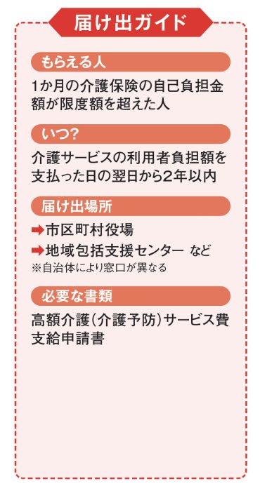 高額になってしまった介護サービス費は限度額を超えると払い戻しに「高額介護(介護予防)サービス費制度」
