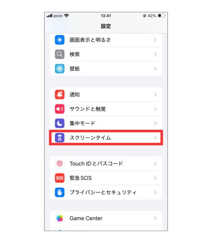 まずホームにある「設定」をタップします。そして画面をスクロールすると出てくる「スクリーンタイム」を選択します。