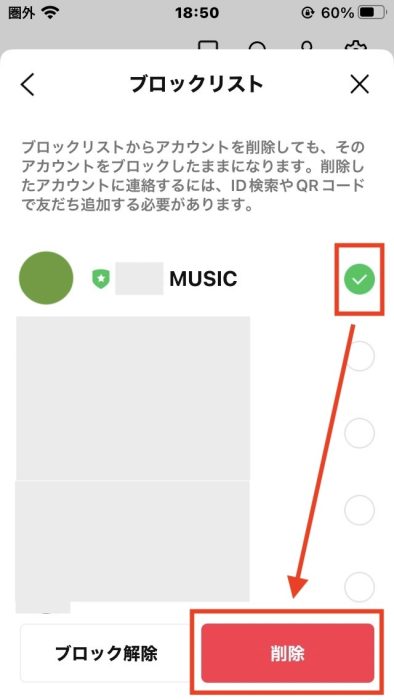 ブロックすると、今後そのアカウントからメッセージが届かなくなります。再度メッセージを受信したくなった時は、ブロックを解除することで再び受信できるようになります。