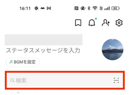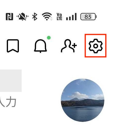 1.LINEのホーム画面で、右上の「歯車」アイコン(設定)を押します。