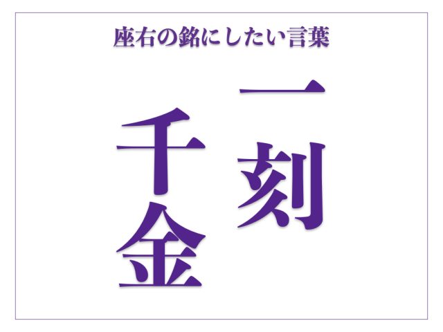 今回の座右の銘にしたい言葉は「一刻千金」(いっこくせんきん) です。