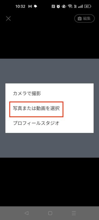 4.画面右上の「編集」をタップし、「写真または動画を選択」をタップし、変更したい画像を選びます。