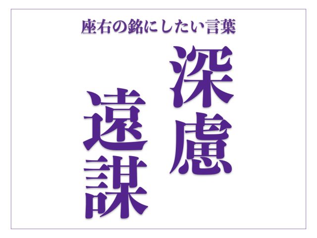 今回の座右の銘にしたい言葉は「深慮遠謀」(しんりょえんぼう) です。