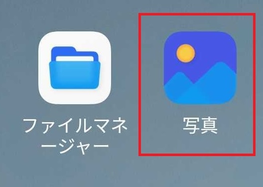 写真アプリを開いて確認します。アプリ名は端末によって異なることもありますが、見つからない場合は「ファイル」アプリから「画像」フォルダを探すと見つかることもあります。