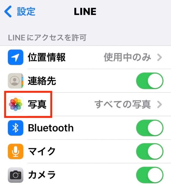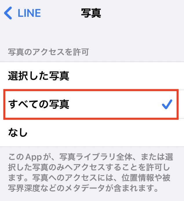 3.「写真」を選び、「すべての写真」にチェックが入っているか確認します。