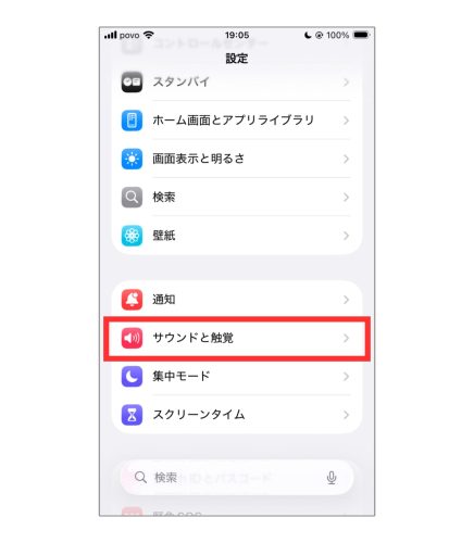 「サウンドと触覚」から設定する