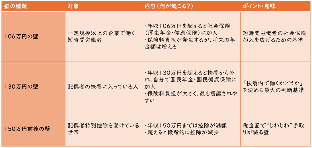 「壁」とは何を意味する? 130万・150万・106万のラインとは