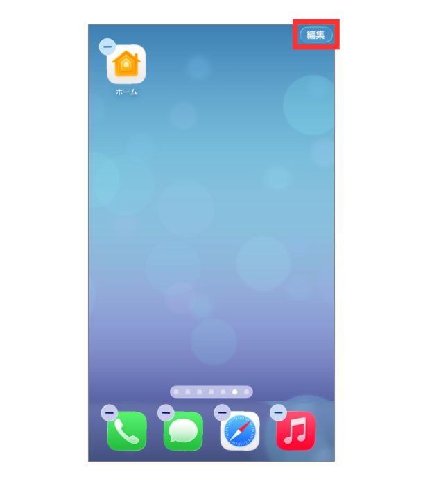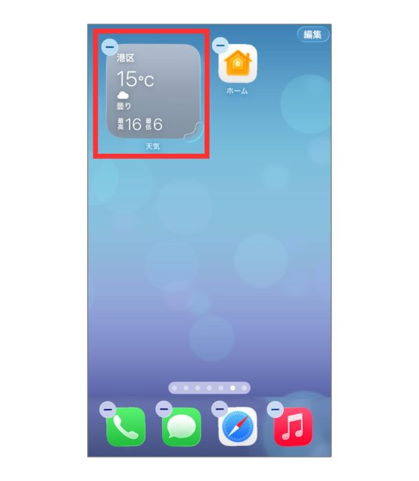 ウィジェットを追加したいページのホーム画面を開いて、画面右上に「編集」と表示されるまで背景を長押しします。