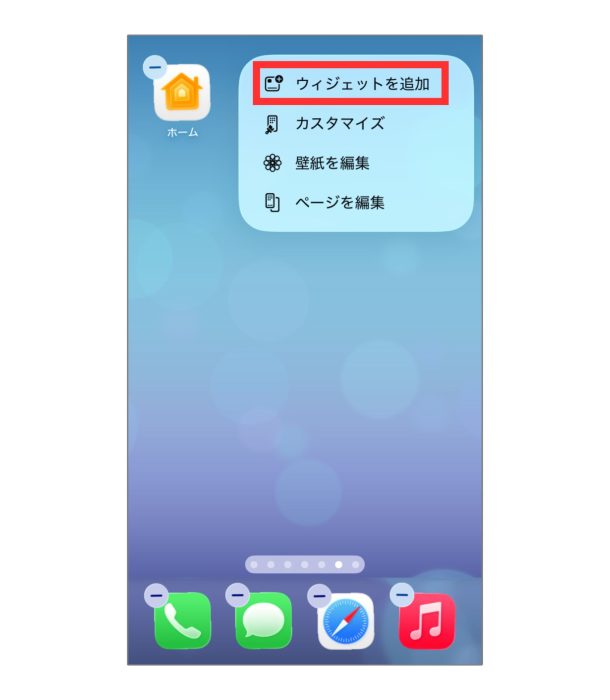 「編集」をタップするとメニューが出てくるので「ウィジェットを追加」をタップします。