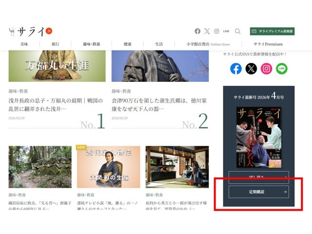 ・インターネットでのお申し込みは、『サライ.jp』内の「定期購読」をクリックしてください。