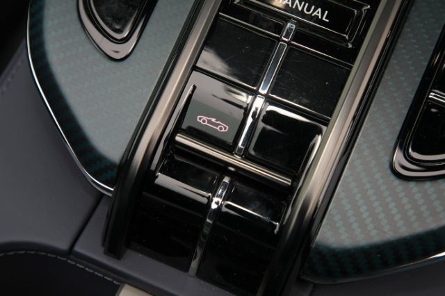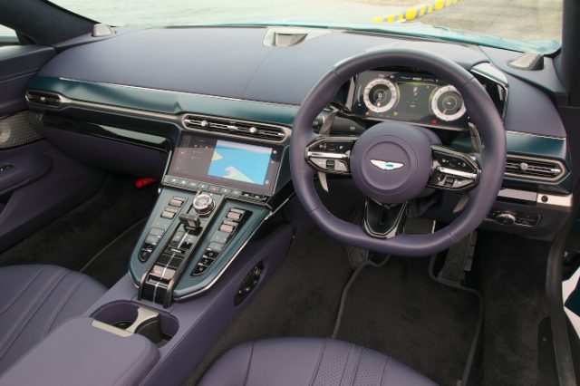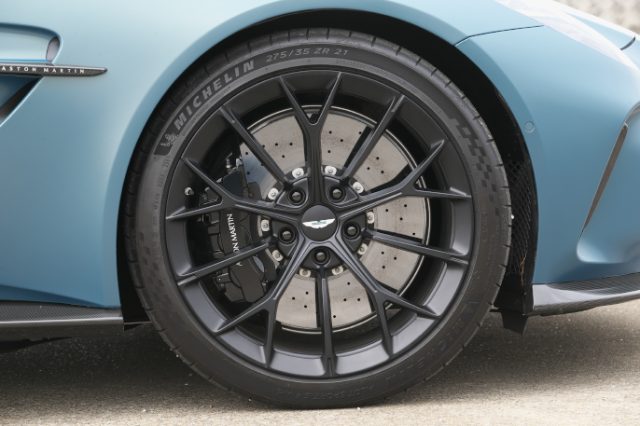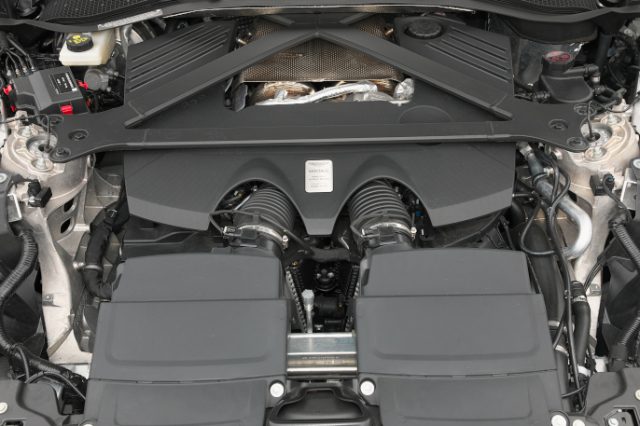 心臓部のエンジンはドイツ、メルセデスAMGの協力の元、アストンマーティンの技術者が一基ずつ手作業で組み上げている。ボンネットを開けると、その技術者の名前が刻まれたネームプレートがエンジンカバーに誇らしげに貼られている。V8、4Lツインターボエンジンは車体前部に搭載され、後輪を駆動する。8速自動変速機での走行は相当に速く、停止から時速100キロまで4秒台で走り切った。最新の制御技術の進化も素晴らしく、665馬力のパワーは無駄なく後輪から路面に伝えられる。走る、曲がる、停まるの先進技術のおかげで、V8エンジンは1100回転あたりからアクセルを踏むと、即座に加速を開始し、100km/hでの巡航を楽しませてくれる。