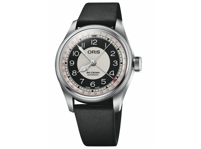 自動巻き(Oris Calibre 754)、パワーリザーブ41時間、ポインターデイト、ステンレススチールケース(径38mm、厚さ12.2mm)、シースルーミネラルガラス、チェルボ ボランテ製ブラック鹿革ストラップ、5気圧防水、36万8500円(税込)。問い合わせ/オリスジャパンTel.03-6260-6876
