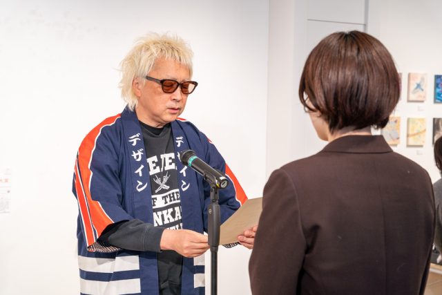 「第20回の節目にふさわしい非常に素晴らしい作品が並んだと思う。学生の力が感じられるし、今後についても期待できる作品が多かったと思う」。当日やむなく欠席となった日比野克彦学長からのメッセージも代読。日比野学長は祝辞に続けて関係者への謝意を述べ、「この藝大アートプラザ・アートアワードは、大学としてもとても大切なアワード。参加してくれる学生たちを育てるとともに、藝大アートプラザもともに成長するように努力を続けていきたい」と、アートアワードの存在意義について語ってくれました。