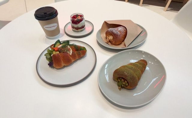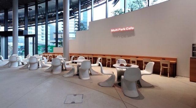 飲食施設は充実の3か所。まず1階の「MoN Park Cafe by Spiral」では、MoNのファサードの螺旋形状に着想を得たオリジナルメニュー「スパイラルコロネ」が来館者を迎えます。