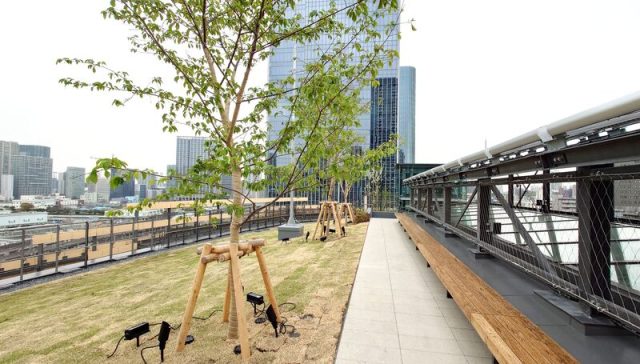 屋上へ抜けると、庭園とテラスが街の印象を変える