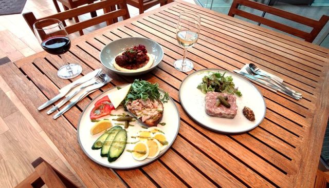 さらに6階では、京都市京セラ美術館や大阪市立美術館で人気のミュージアムカフェを展開するパートナーによる「MoN Garden Restaurant “LAUBE”」が開業。LAUBEとは、ドイツ語で“草陰の小屋”という意味で、まさに都心の喧騒を離れた隠れ家的なレストランという趣です。提供されるのはオーガニックで彩り豊かな創作料理の数々。週末の夜は「クラフトナイトテラス」として、都心の夜風とともにクラフトドリンクとライトミールを提供。夜景にふれながら味わうmitosaya 薬草園蒸留所とのコラボレーションによる季節限定カクテルも非常に楽しみです。