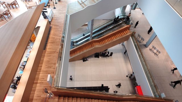 この施設を語るうえで欠かせないのが、隈研吾建築都市設計事務所による外装デザインです。木をふんだんに用いたファサードは、ゆるやかな螺旋を描きながら大地から空へ立ち上がっていくような印象を与えます。文化とは直線的に積み重なるものではなく、過去・現在・未来が重なり合いながら続いていく“スパイラル”だと捉え、その考え方を、建築、ブランド、コンテンツのすべてに一貫させているという説明が印象的でした。