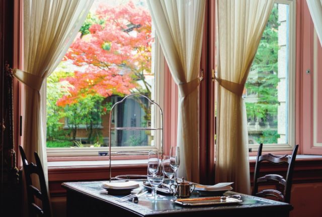 外観はルネサンス風、内部は部屋ごとにロココやネオ・クラシック、アールヌーヴォーなどの様式が共存、調和している。建物と家具51点他が国の重要文化財だ。往時、国内外の賓客をもてなした空間を、レストラン、カフェとして満喫できる。長楽館でのアフタヌーンティーを、友人と何度も楽しんでいるという澤田さんは続ける。