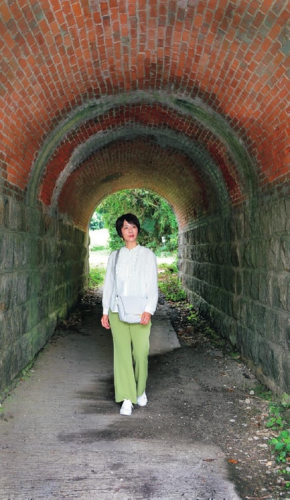 「梶ヶ谷隧道や赤橋のレンガは明治の鉄道構造物などによく見られた『イギリス積み』(※レンガの長い面だけの段と短い面だけの段を交互に積み上げる、英国から伝わった工法。)ですね。中も歩けます。梶ヶ谷隧道を抜けると山深い秘境ともいえる景色が広がり、反対側はきれいな公園などもある住宅地と、その対比が際立っています。もしかしたらここは鉄道が走っていた当時と現在を結ぶ、タイムトンネルなのかもしれません」