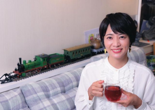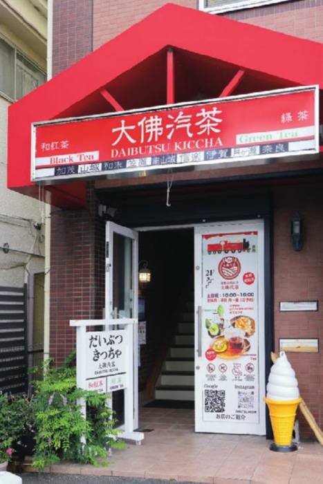 遺構巡りを終えて、加茂駅近くの『大佛汽茶』(上)でくつろぐ村井美樹さん。鉄道ファンのジャンルでいえば鉄道旅を楽しむ「乗り鉄」だが、全国の廃線跡も訪れる。今回は地元の「大仏鉄道愛」を強く感じたという。