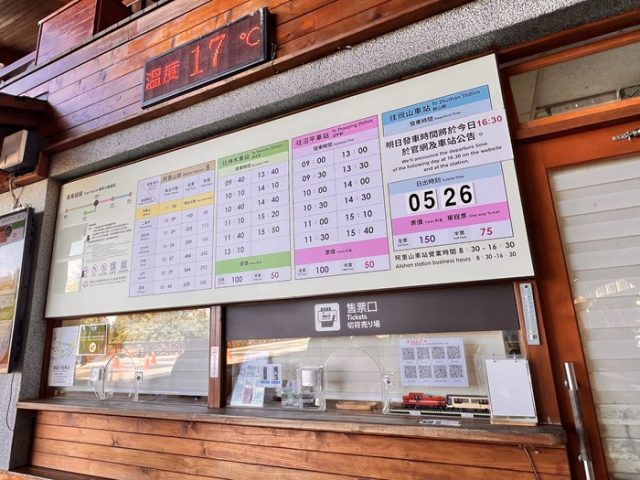 阿里山鉄道の公式ウェブサイトから、14日以内(乗車日を除く)の列車を予約することができる。日本語での予約およびクレジットカードでの決済が可能。(https://afrch.forest.gov.tw/Ja